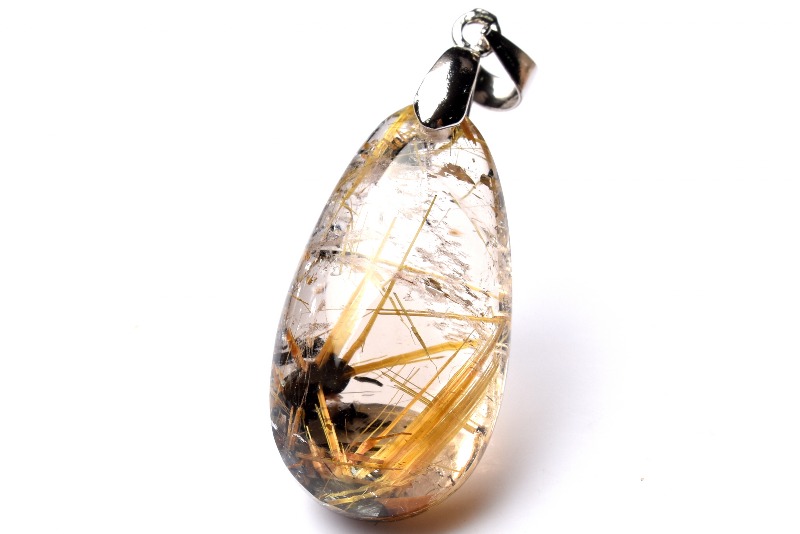 特徴・意味透明度が高い水晶の中に太い金針が内包され、力強い印象のペンダントトップです。