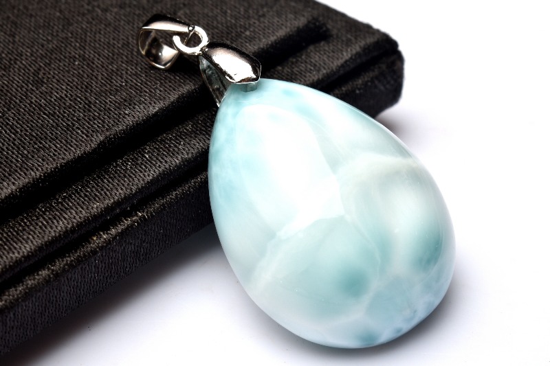 【1点物】美しい水面模様 ラリマー 27x21mm ドロップ ペンダントトップ _PC3179