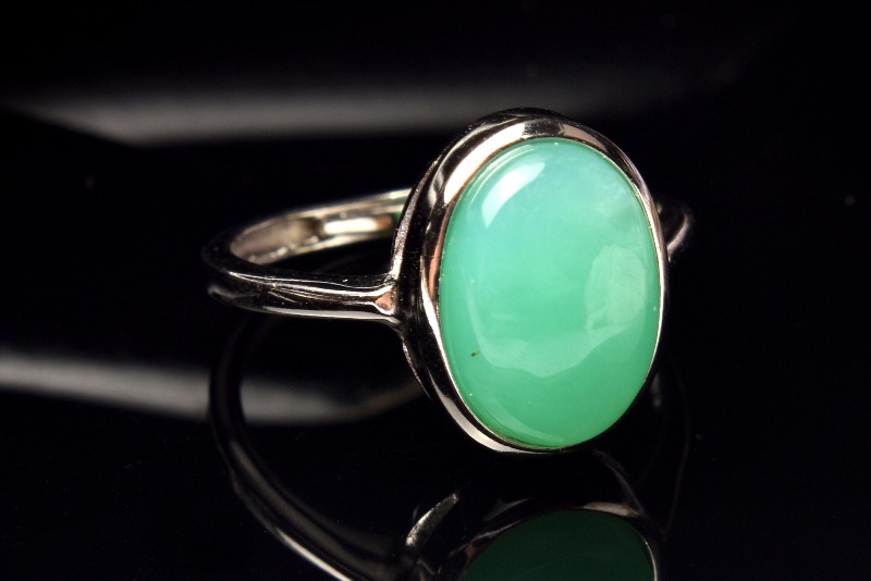 【1点物】Silver925 クリソプレーズ 11x8mm オーバル 指輪リング(サイズ調整可) _PC3206