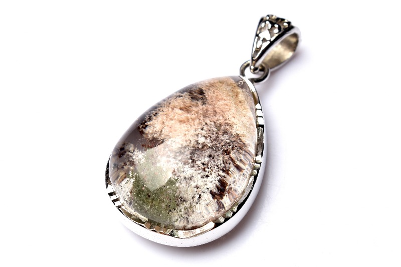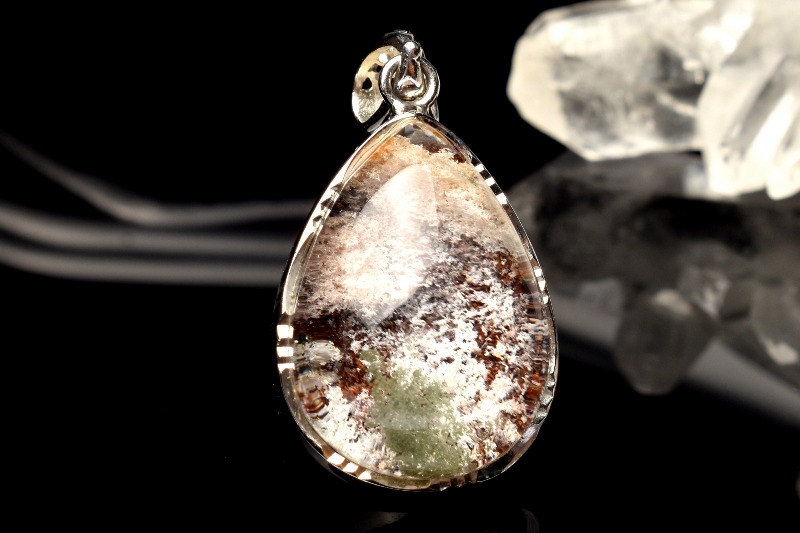 【1点物】Silver925◇庭園水晶 グリーンファントムクォーツ 24x17mm ドロップ ペンダントトップ _PC3224