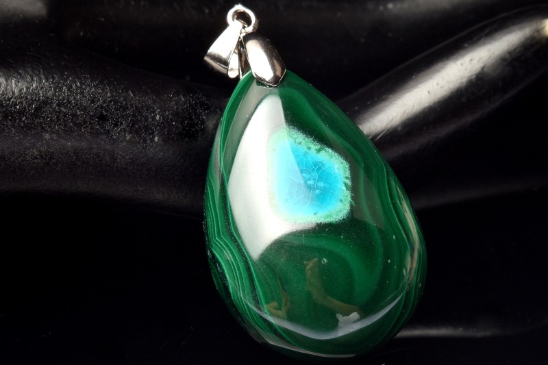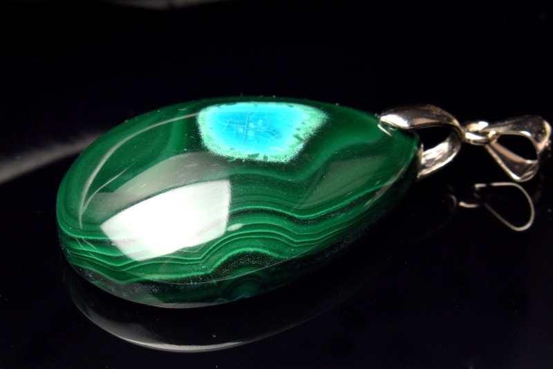 【1点物】Silver925◇高発色 クリソコラインマラカイト 30x21mm ドロップ ペンダントトップ _PC3244