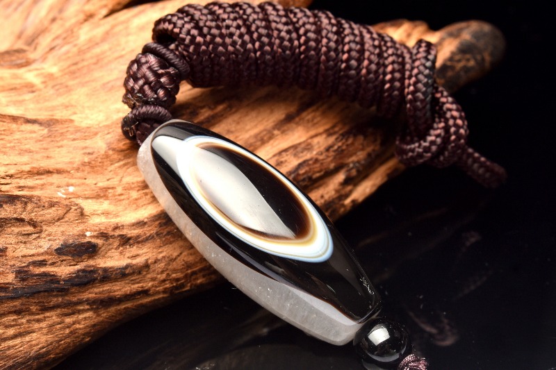 眼の模様が入った部分の原石を切り出し作られた天然の天珠です。