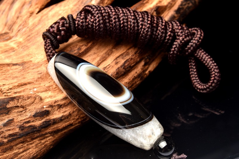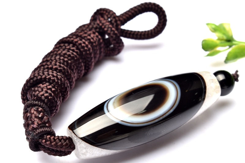 眼の模様が入った部分の原石を切り出し作られた天然の天珠です。