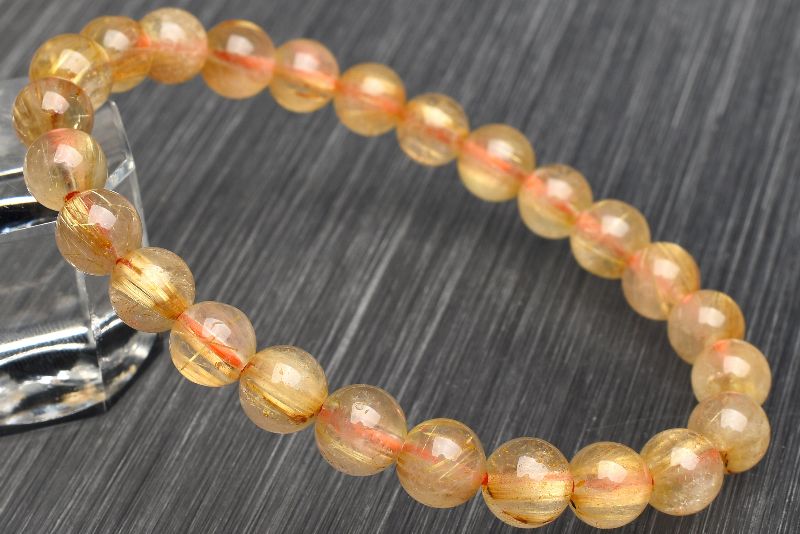 【1点物】金針の輝き ゴールドタイチンルチルクォーツ 7.5mm ブレスレット _U6199