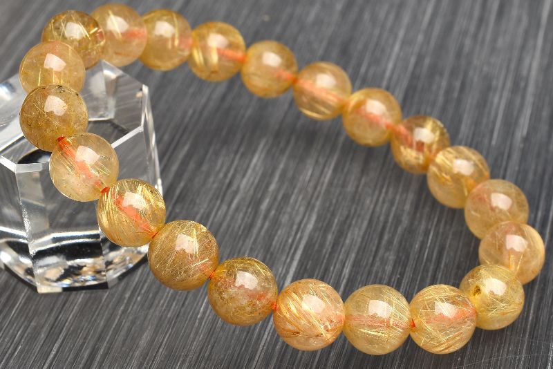 材質ゴールドタイチンルチルクォーツ 9.5mm 産地:ブラジル