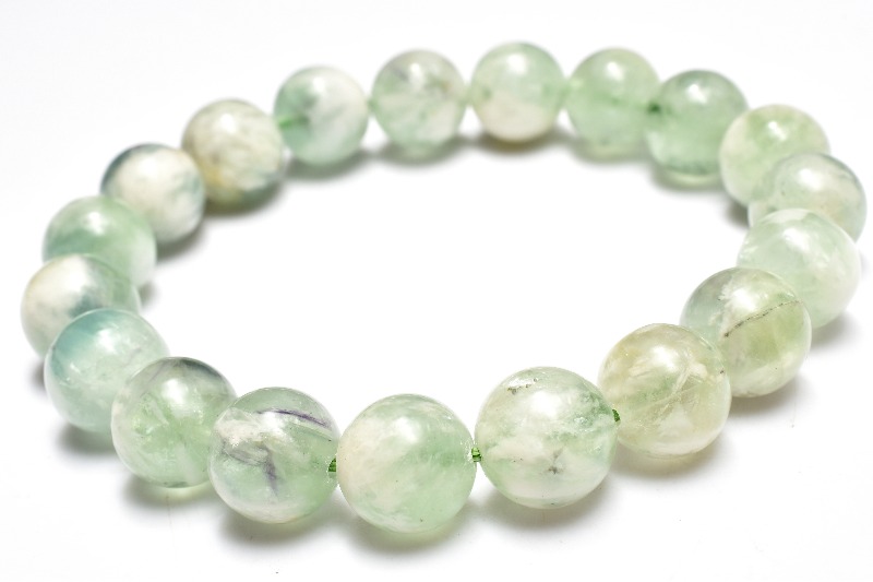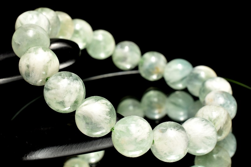 【1点物】幻想的◇白い羽根 フェザーインフローライト 10.5mm ブレスレット _MA2704