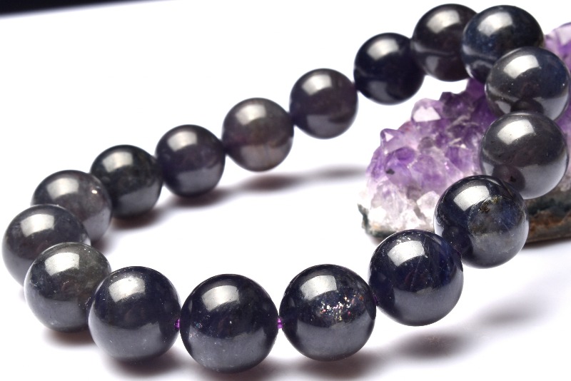 【1点物】多色性&シラーの輝き アイオライトサンストーン 12-12.5mm ブレスレット _MA2765