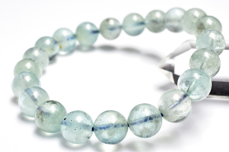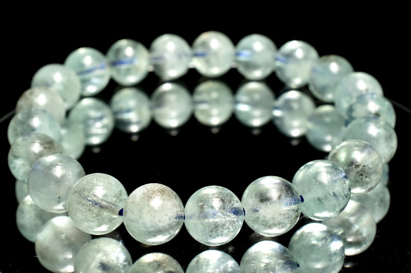 【1点物】南アフリカ産◇ミントブルー ブラックアクアマリン 9mm ブレスレット _MA2766