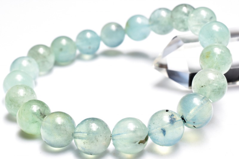 【1点物】南アフリカ産◇ミントブルー ブラックアクアマリン 10mm ブレスレット _MA2768