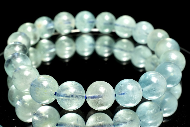 【1点物】南アフリカ産◇ミントブルー ブラックアクアマリン 9.5mm ブレスレット _MA2774