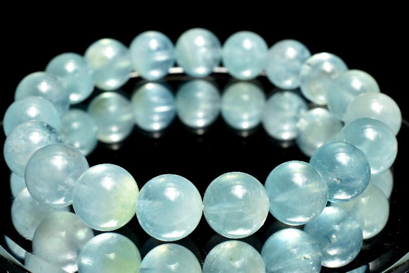 【1点物】南アフリカ産◇ミントブルー ブラックアクアマリン 10.5mm ブレスレット _MA2776