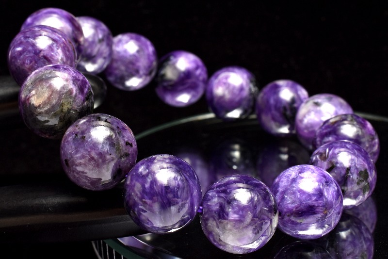 チャロアイトという名前の由来には、シベリアのチャロ川流域で発見された事とする説と、ロシア語の(Charo魅惑)から名づけられたという説がありますが、後者の方が有力であるとされています。その名の通り、この石の個性的な模様は、見る人を魅了してやみません。まさに、「魅惑の宝石」にぴったりな石です。
