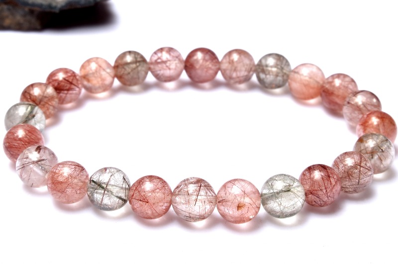 【1点物】レッド・シルバー MIXルチルクォーツ 7.5mm ブレスレット _MA2833