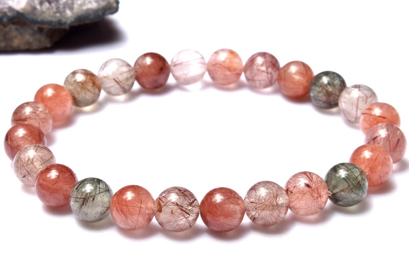 【1点物】レッド・シルバー MIXルチルクォーツ 8mm ブレスレット _MA2836