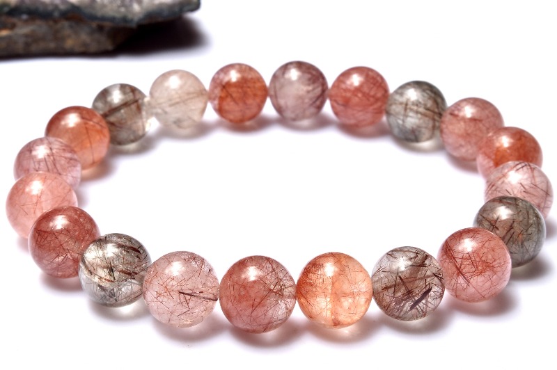 【1点物】レッド・シルバー MIXルチルクォーツ 9.5mm ブレスレット _MA2837