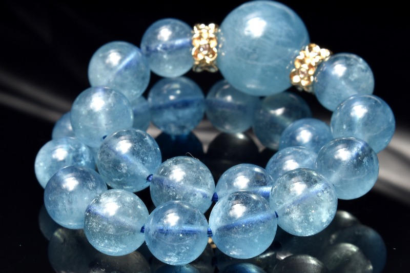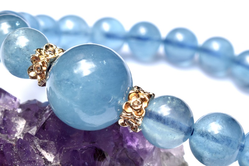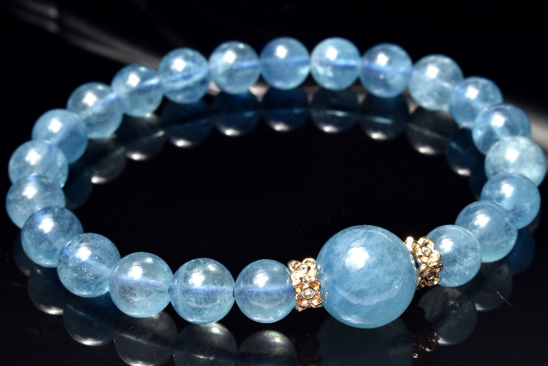 特徴・意味まるで氷のような透明な部分とミルキーな部分が合わさったアクアマリンのシンプルなデザインブレスです。