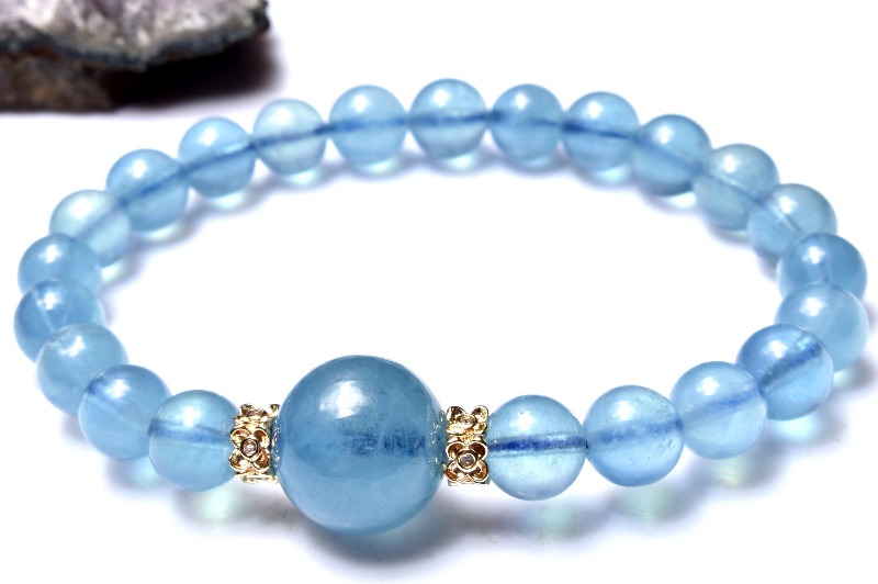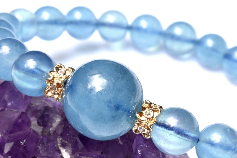 特徴・意味まるで氷のような透明な部分とミルキーな部分が合わさったアクアマリンのシンプルなデザインブレスです。