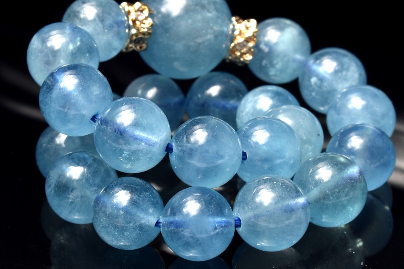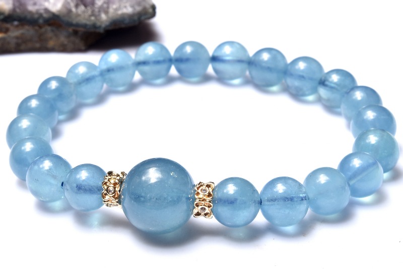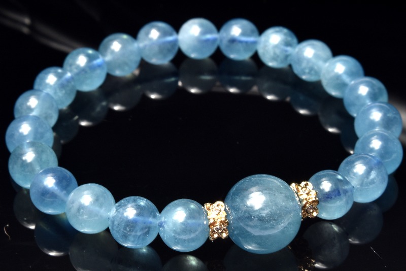 特徴・意味まるで氷のような透明な部分とミルキーな部分が合わさったアクアマリンのシンプルなデザインブレスです。