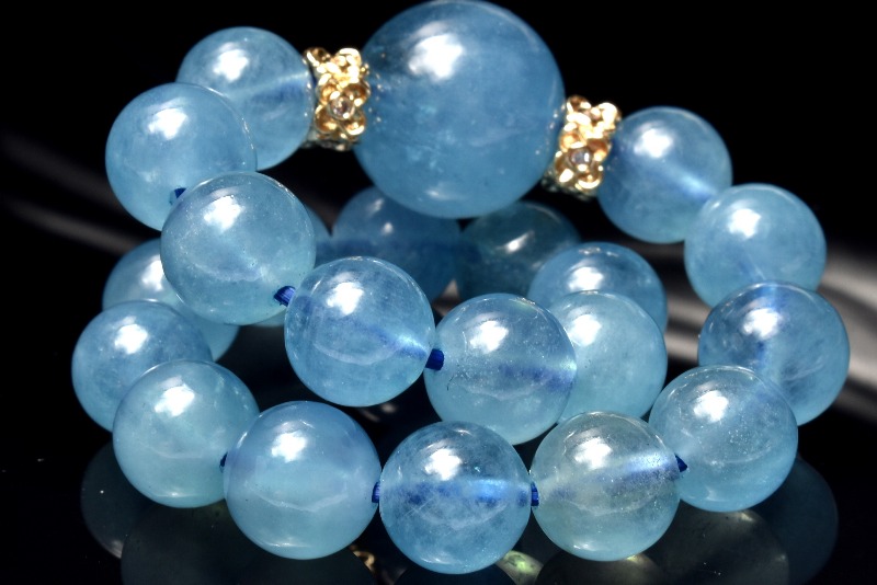 特徴・意味まるで氷のような透明な部分とミルキーな部分が合わさったアクアマリンのシンプルなデザインブレスです。