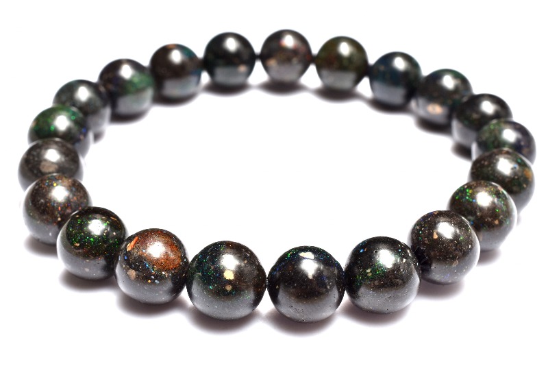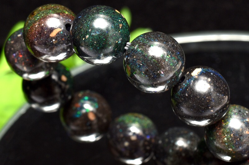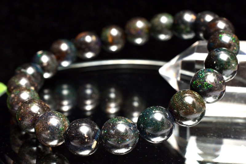 【1点物】遊色効果◇宇宙のよう ブラックマトリックスオパール 9mm ブレスレット _MA2919