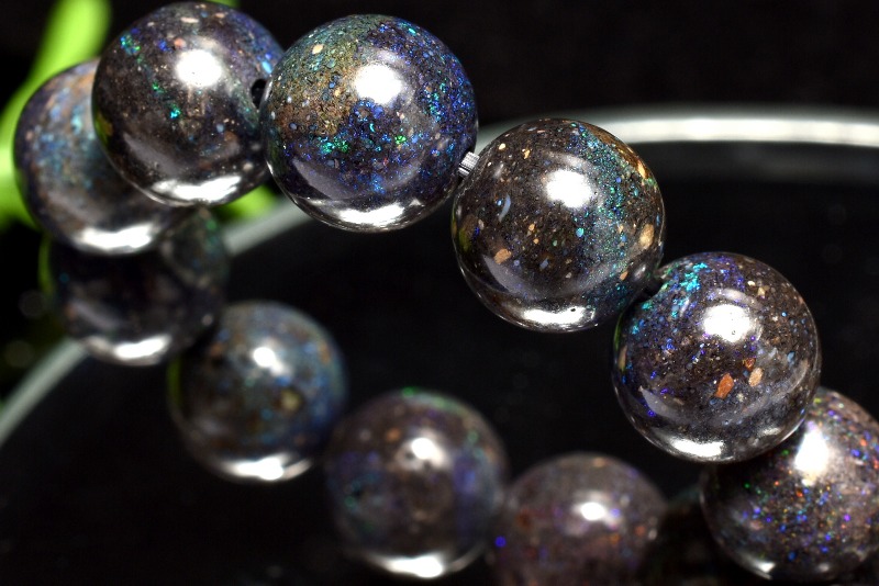 肉眼でも遊色は見られますが、強い光に当てると、まるで宇宙を見ているかのようにキラキラと煌めく美しいタイプ。