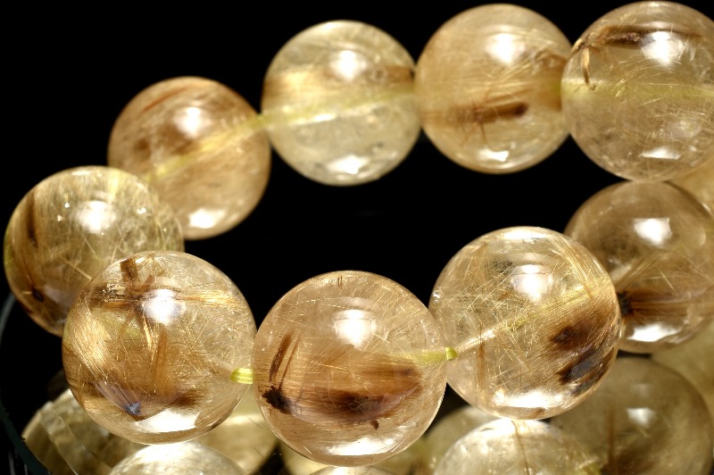 材質タイガータイチンルチルクォーツ 14-14.5mm 産地:ブラジル