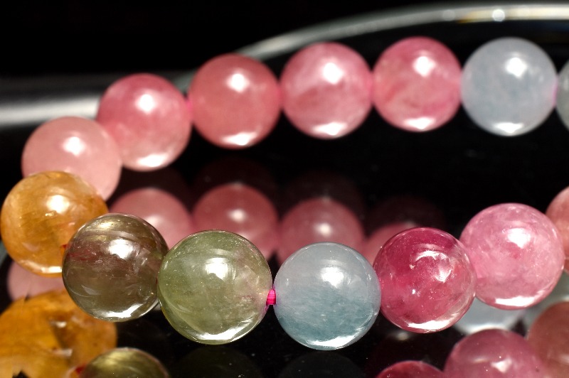 【1点物】高品質◇マルチカラー MIXトルマリン 6.5mm ブレスレット _MA2955