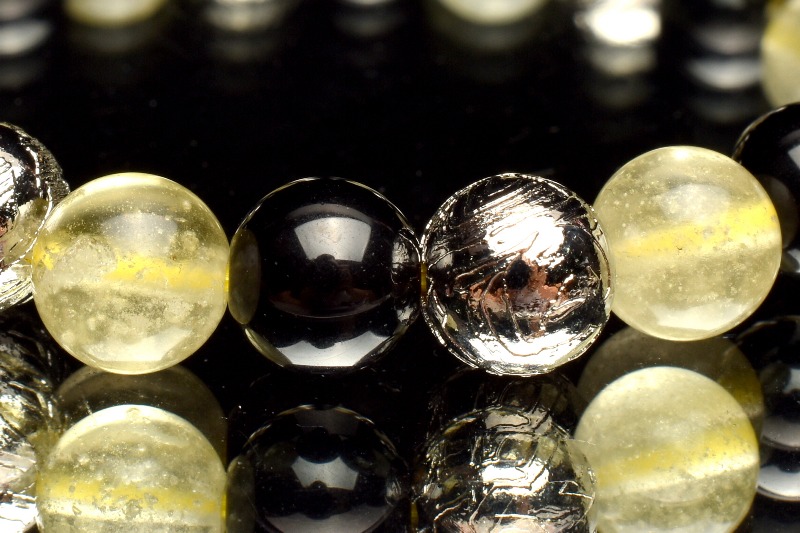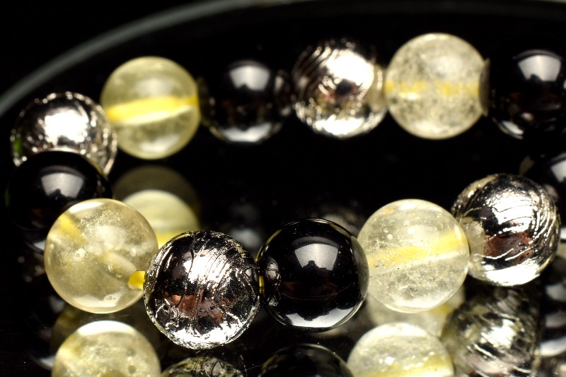 【1点物】贅沢◇宇宙のパワー MIX隕石(アルタイ隕石+黒隕石+リビアングラス) 8mm ブレスレット _MA2965