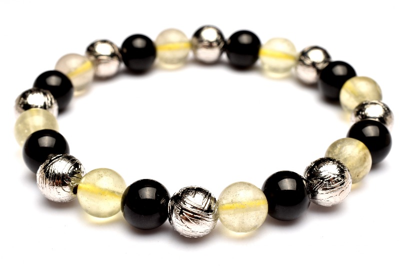 【1点物】贅沢◇宇宙のパワー MIX隕石(アルタイ隕石+黒隕石+リビアングラス) 8mm ブレスレット _MA2966