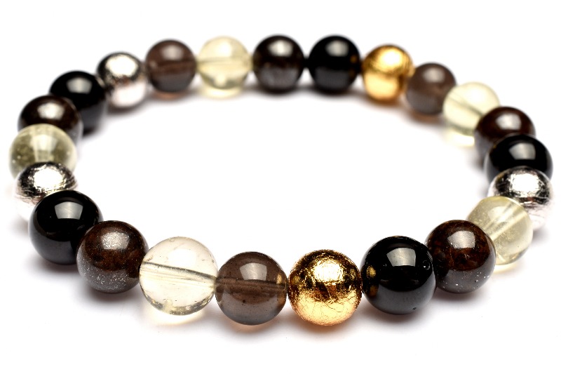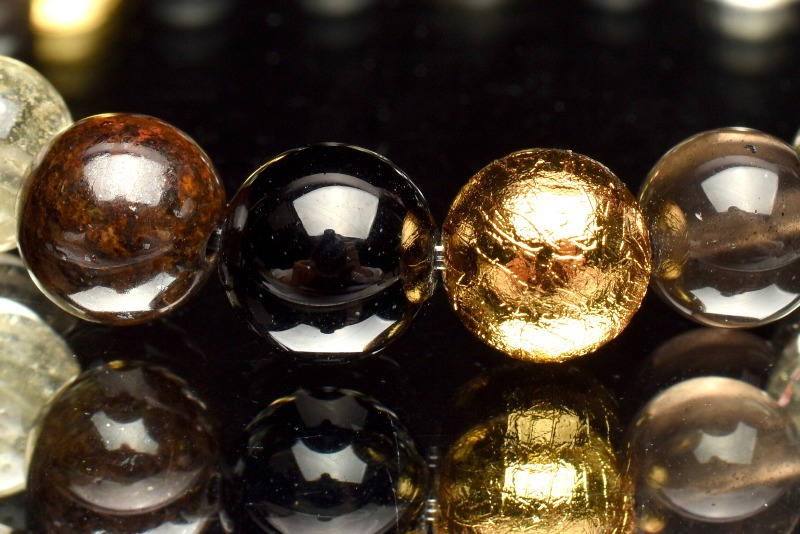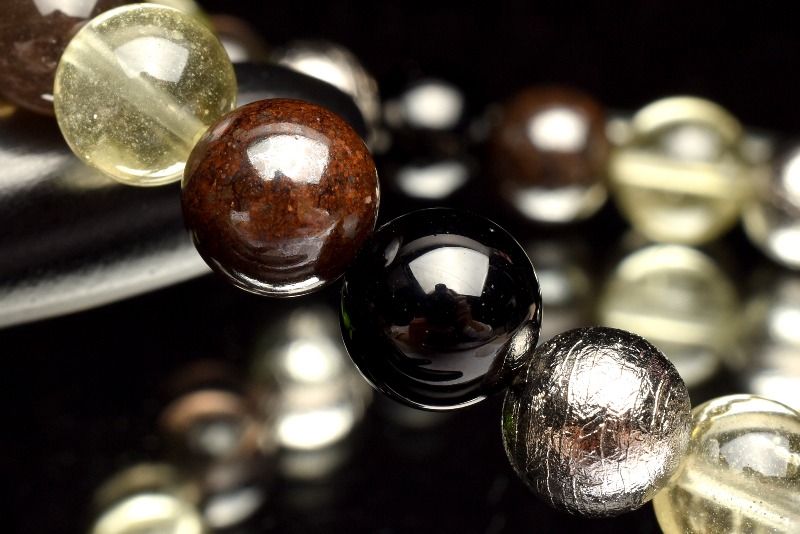 【1点物】贅沢◇宇宙のパワー MIX隕石(アルタイ隕石+黒隕石+リビアングラス+コンドライト隕石) 8-9mm ブレスレット _MA2971