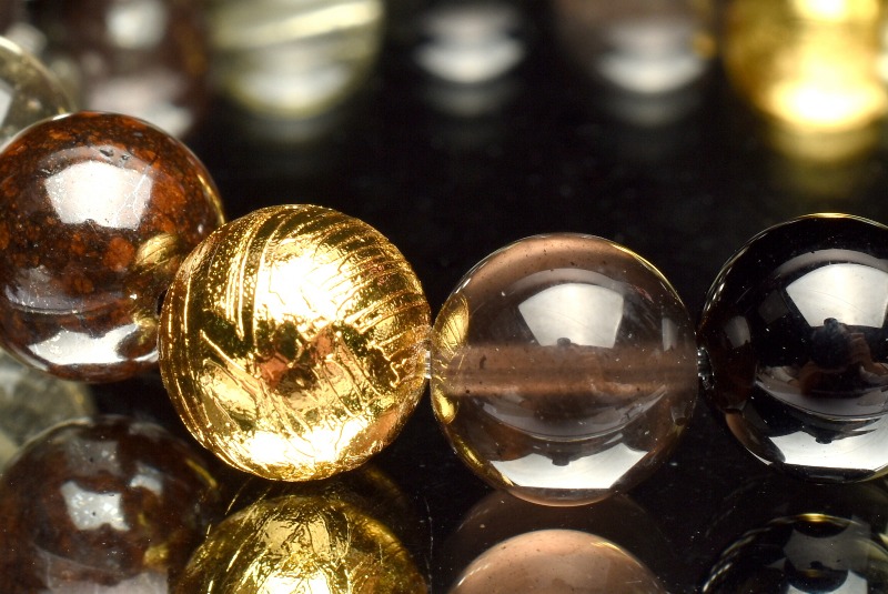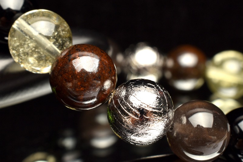 【1点物】贅沢◇宇宙のパワー MIX隕石(アルタイ隕石+黒隕石+リビアングラス+コンドライト隕石) 10-10.5mm ブレスレット _MA2973