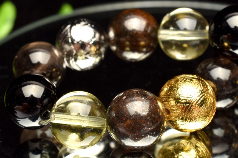 【1点物】贅沢◇宇宙のパワー MIX隕石(アルタイ隕石+黒隕石+リビアングラス+コンドライト隕石) 10-10.5mm ブレスレット _MA2975