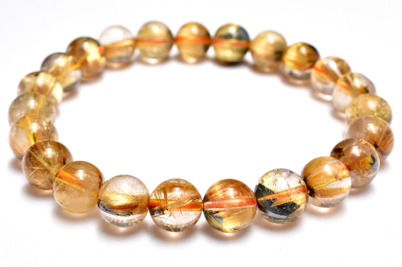 材質ヘマタイトインタイチンルチルクォーツ 8.5mm 産地:ブラジル