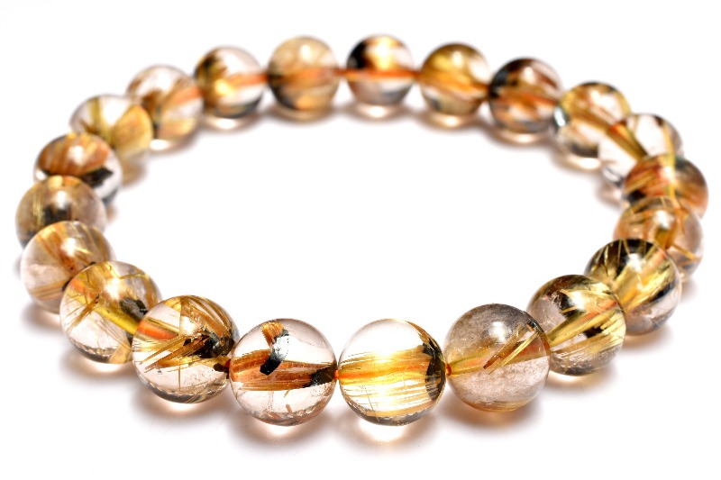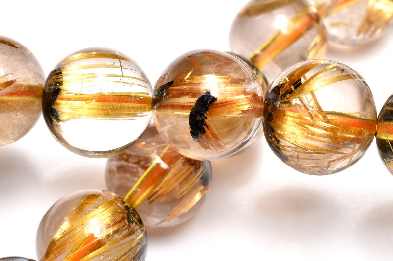 材質ヘマタイトインタイチンルチルクォーツ 9.5mm 産地:ブラジル