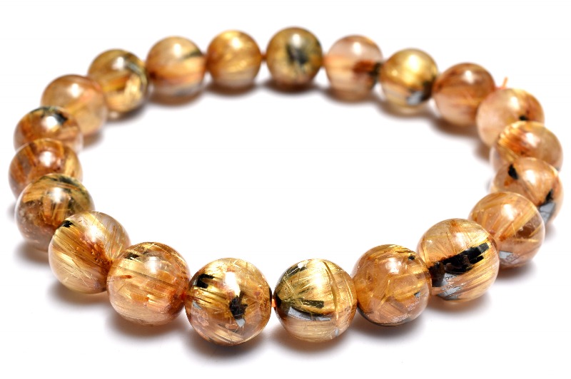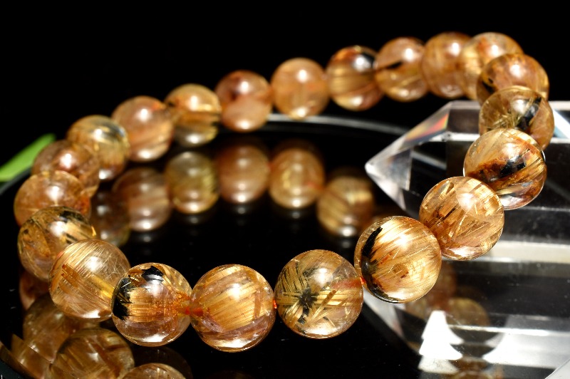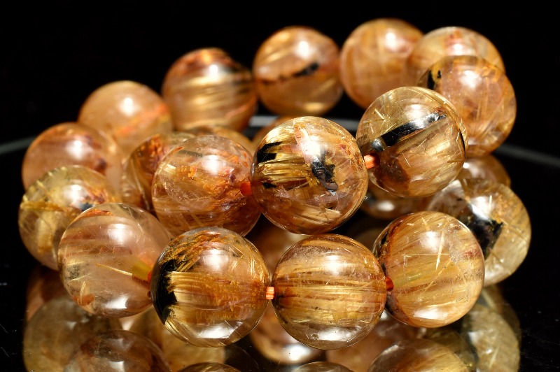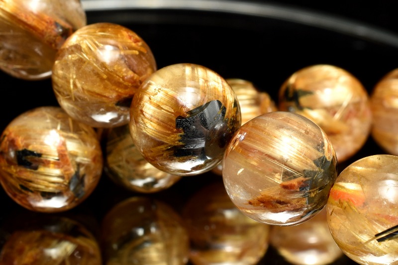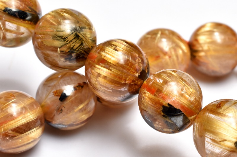 材質ヘマタイトインタイチンルチルクォーツ 9.5mm 産地:ブラジル