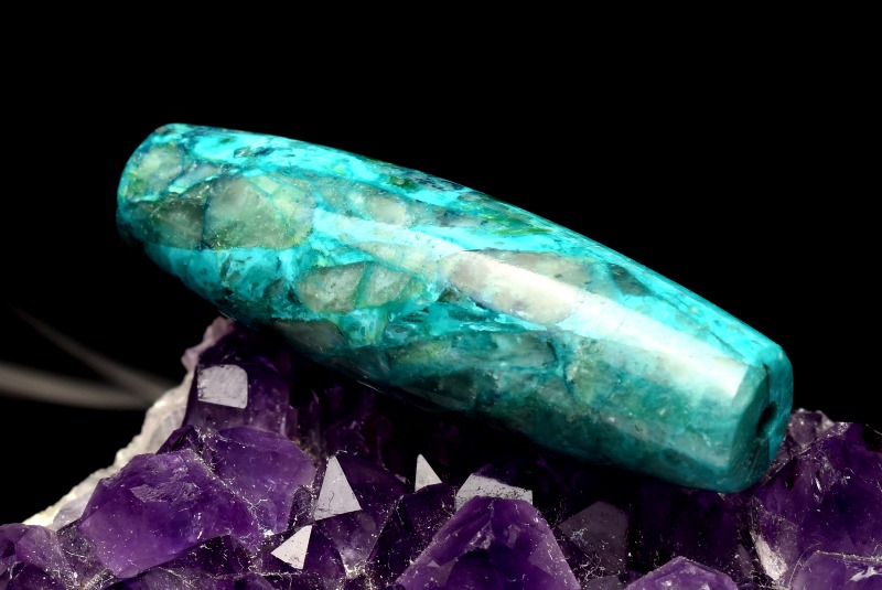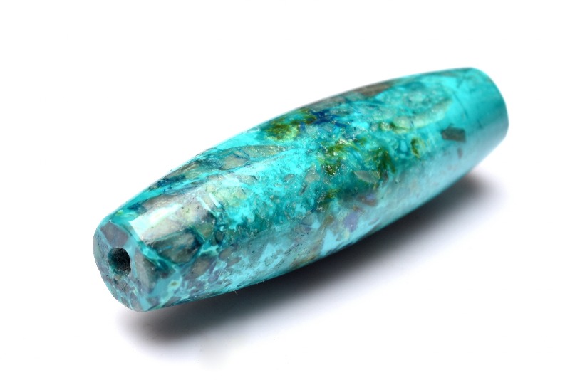 【1点物】高発色ブルー アズロマラカイト 37x11mm 天珠型(貫通穴) ビーズ _PC3340