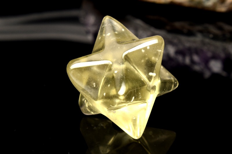 【1点物】AAA☆透明レモンカラー リビアングラス 13x14mm マカバスター 六芒星(貫通穴) ビーズ _PC3363
