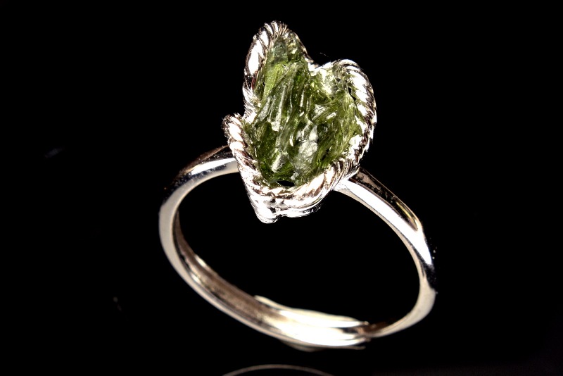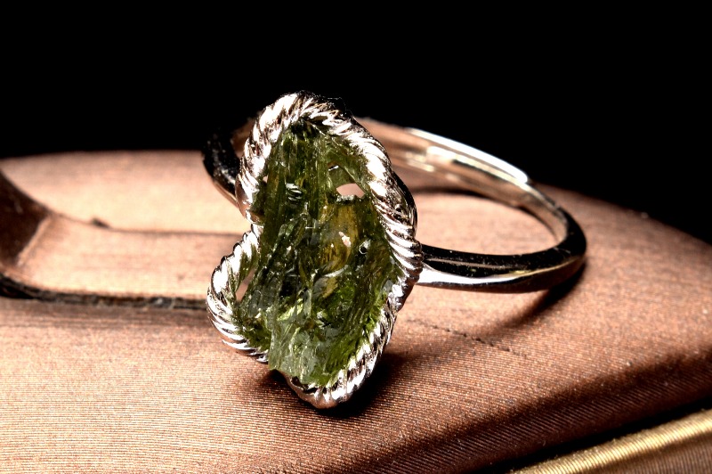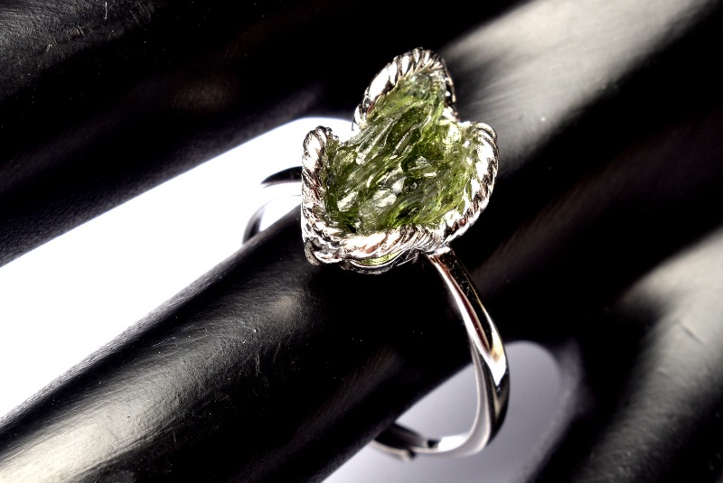 【1点物】Silver925◇ モルダバイト隕石 13x7mm 原石 指輪リング(サイズ調整可) _PC3380