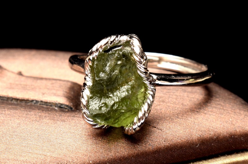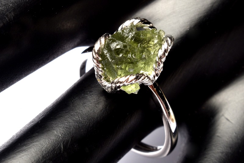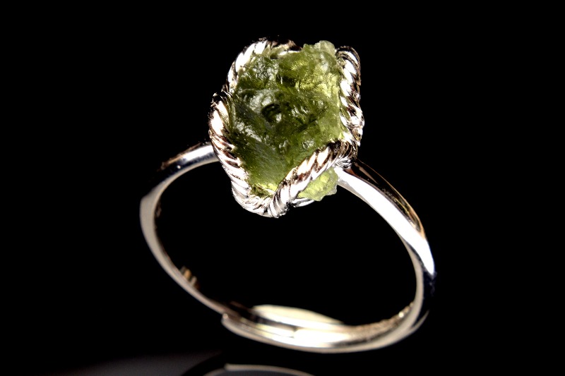 【1点物】Silver925◇ モルダバイト隕石 10x8mm 原石 指輪リング(サイズ調整可) _PC3381