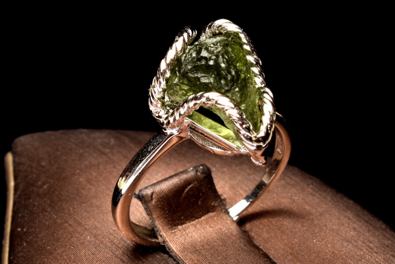 【1点物】Silver925◇ モルダバイト隕石 17x10mm 原石 指輪リング(サイズ調整可) _PC3383