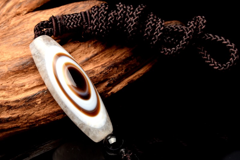 眼の模様が入った部分の原石を切り出し作られた天然の天珠です。