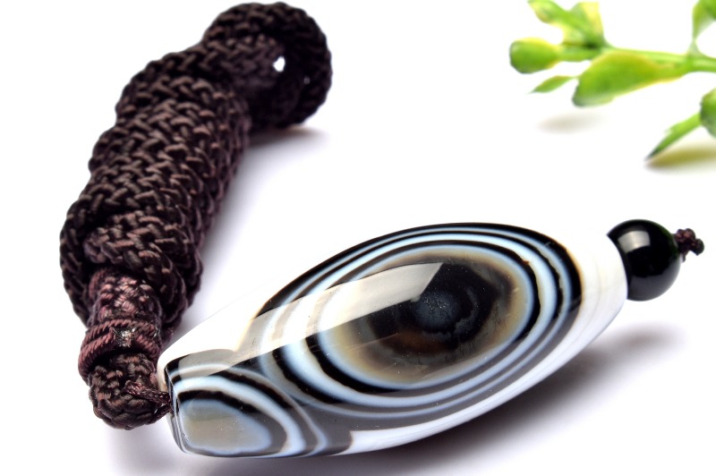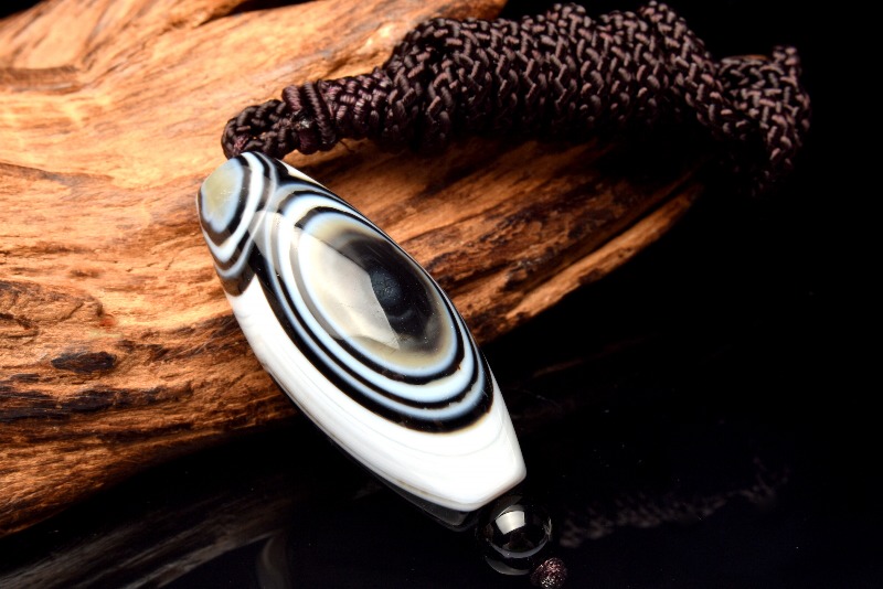 眼の模様が入った部分の原石を切り出し作られた天然の天珠です。