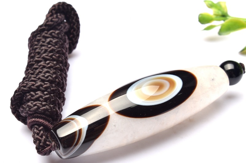 眼の模様が入った部分の原石を切り出し作られた天然の天珠です。