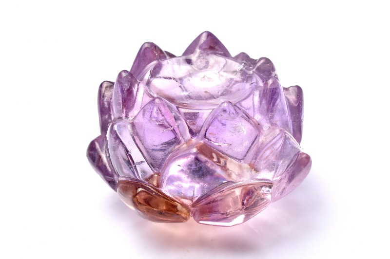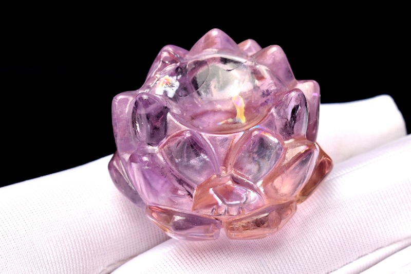 【1点物】繊細彫刻 アメトリン 33x34x24mm 睡蓮花彫刻 台座 置物 _CG6329【宅急便のみ】