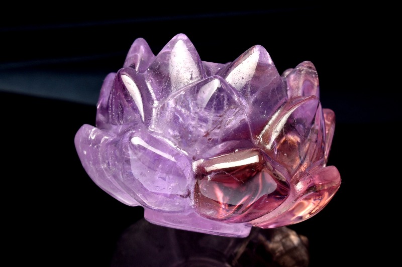 【1点物】繊細彫刻 アメトリン 38x38x27mm 睡蓮花彫刻 台座 置物 _CG6335【宅急便のみ】