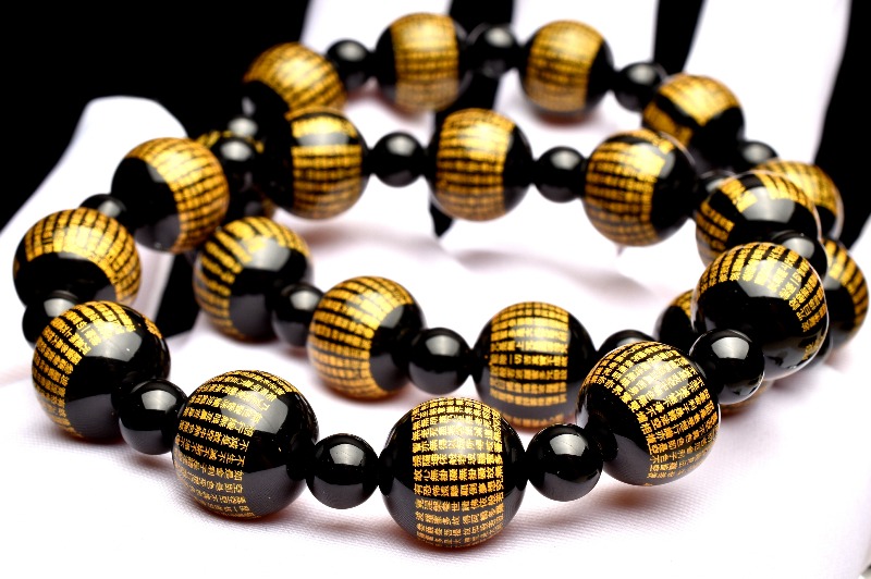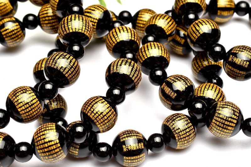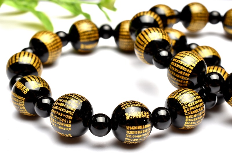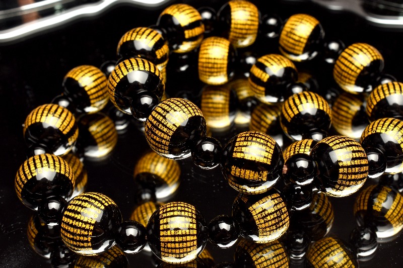 お守りに! オニキス 12(丸玉6)mm 般若心経彫刻 ブレスレット 1個売り_BG5636-12