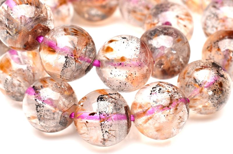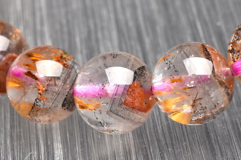 今回入荷分は水晶の透明度も高く、ブラックレピドクロサイトがファントム状になった珠がいくつもあり幻想的です。