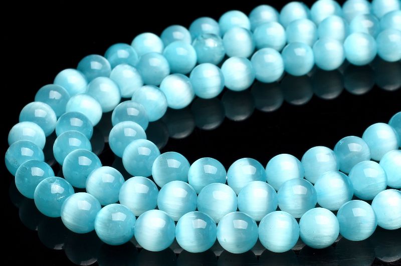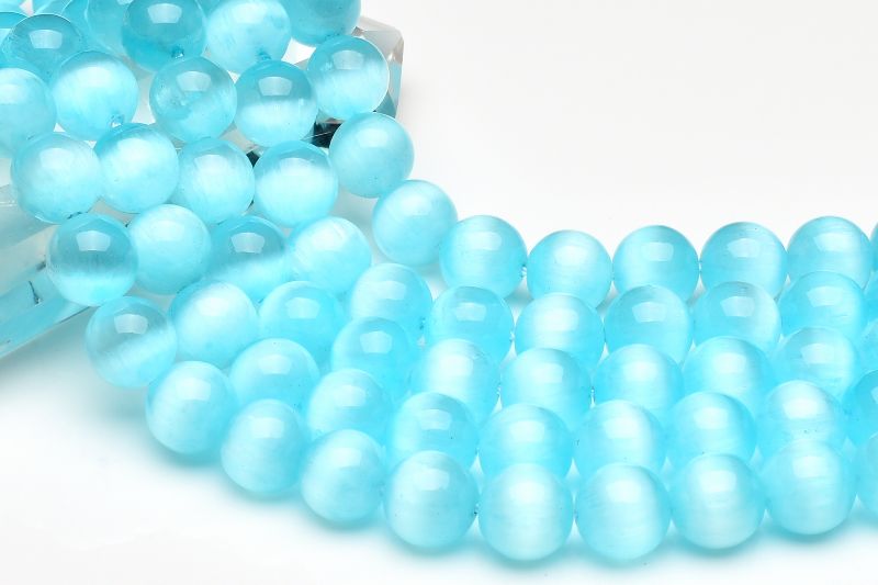 キャッツアイ スカイブルーセレナイト(透石膏) 10mm 1連(約38cm) _R6111-10