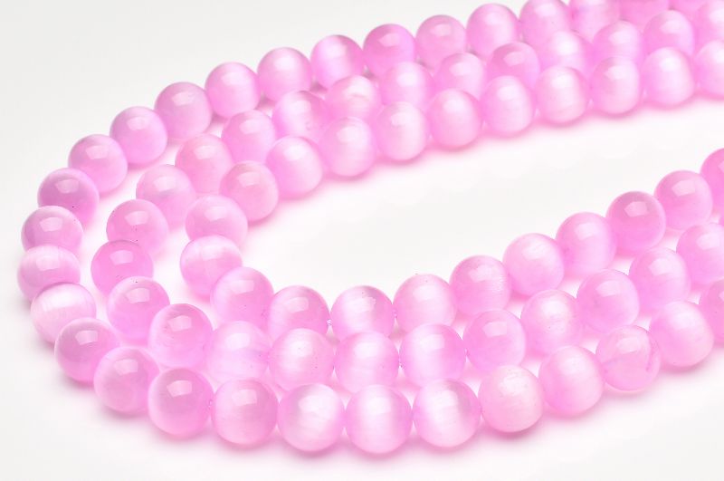 キャッツアイ ピンクセレナイト(透石膏) 8mm 1連(約38cm) _R6113-8