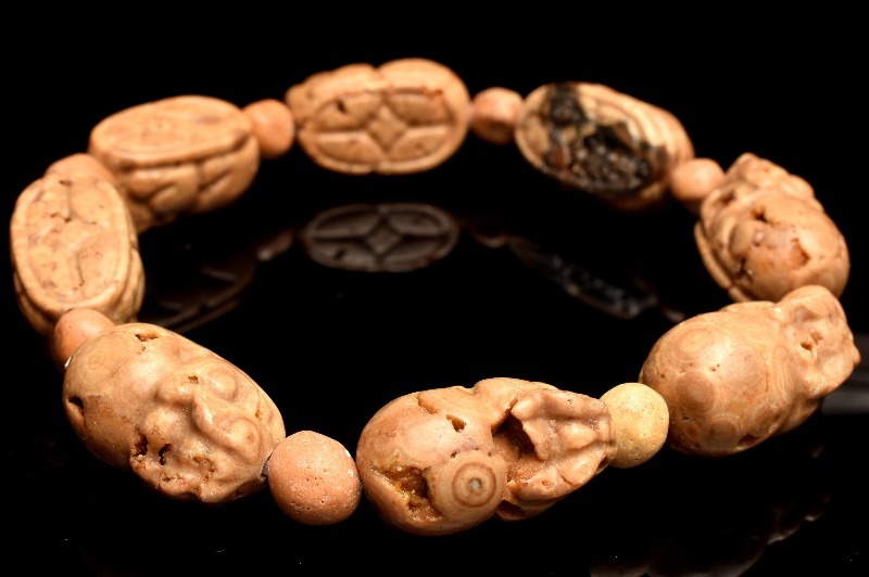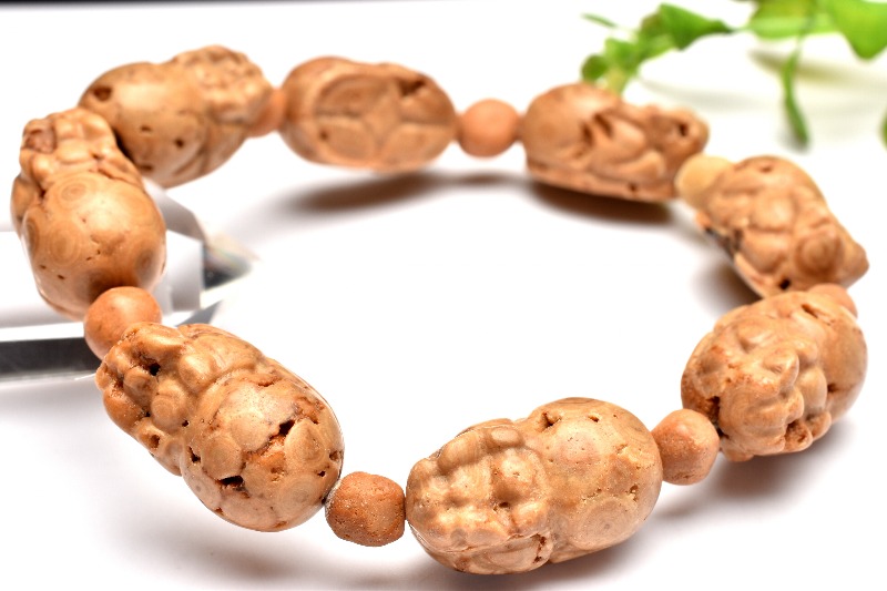 【1点物】身に着ける御神体 龍宮舎利石 21.5-22x12-12.5(丸玉6.5)mm 貔貅彫刻 ブレスレット _MA3056
